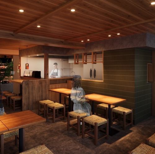 木の優しさに包まれる店内は、都会の喧騒を忘れさせてくれる穏やかな空気が流れています。お仕事帰りや大切な方とのお食事に最適な、落ち着きのある雰囲気を大切にしました。どなたでもゆったりとリラックスしながら特別な時間を過ごせるよう、細部まで意匠を凝らしております。